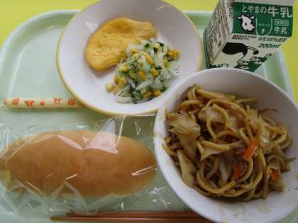・コッペパン ・牛乳 ・やきそば ・オムレツ ・えごまドレッシング ・棒チーズ