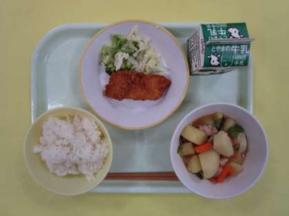 ごはん 牛乳 魚のいり大豆揚げ 花野菜のサラダ 南蛮煮