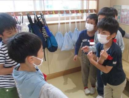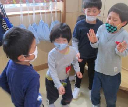 体じゃんけんをして、仲良く楽しく安全に遊んでいます。