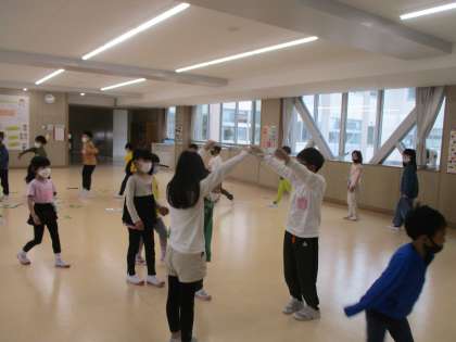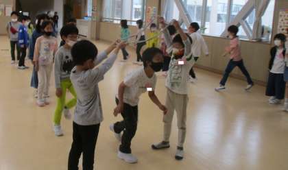 ロンドン橋の曲に合わせて、みんなで遊びました。