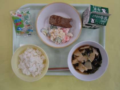 ごはん 牛乳 鯉のぼりハンバーグ ポテトサラダ 若竹汁 かしわもち