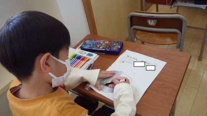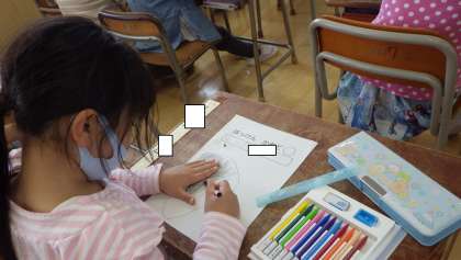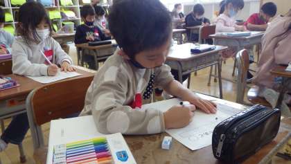 生活科の時間に育てるアサガオの種を観察し、記録しました。色や形、大きさに注目して熱心に観察していました。