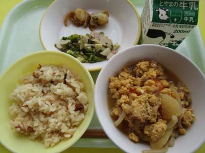 ・五目ごはん  ・牛乳  ・ほたての香味焼き