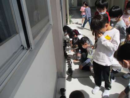 モンシロチョウの観察とひまわりやホウセンカのお世話をしました。