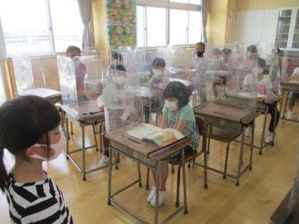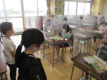 音楽の学習で、「かくれんぼ」の曲を歌いました。