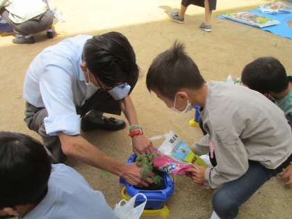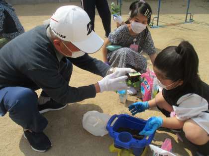 名人さんにコツを聞きながら、しっかり植えることができました。