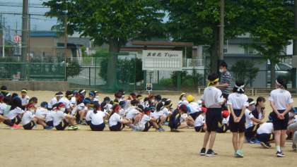 昼休みに選手リレーの練習を行いました。入場の仕方やバトンパスの仕方を確認しています