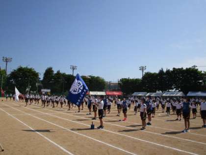 運動会の予行練習を行いました。開会式では、運営委員会による国旗・校旗の掲揚や各団の決意があります。