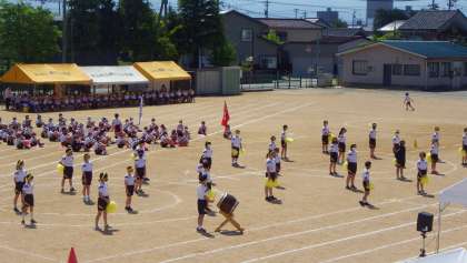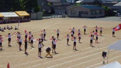高学年の団体競技は、「応援合戦」です。各団工夫を凝らした、力強い応援です。