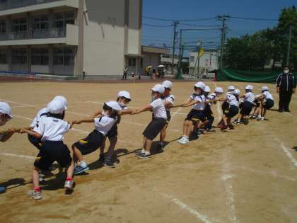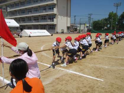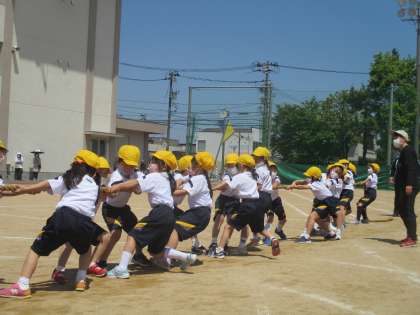 綱引きでは、一生懸命綱を引いて自分の力を出し切りました。