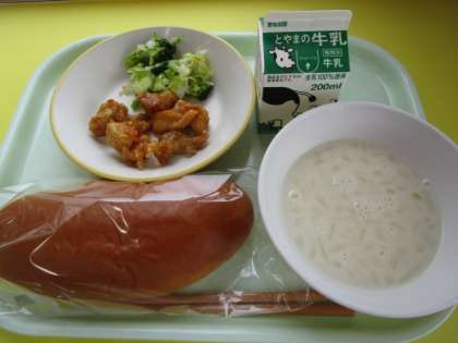黒糖コッペパン   牛乳   鶏肉のマーマレードソースかけ