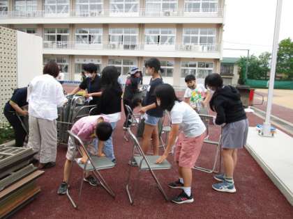 5・6年生が運動会の準備をしました。グラウンドの石を拾ったり、来賓のいすを拭いたり、係の準備をしたり・・・。