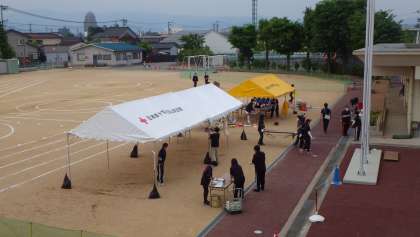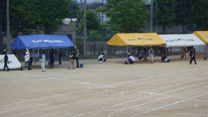 運動会当日となりました。PTAの皆様にご協力いただき、本部や団席のテントを立てました。