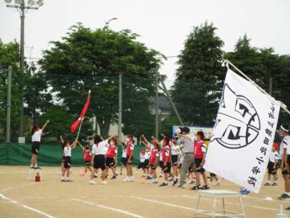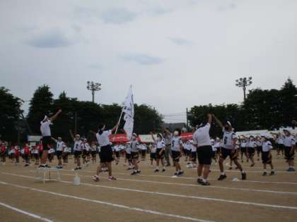 各団の意気込みです。団長のかけ声に合わせ、力強く「オ−!」と声を出しました。