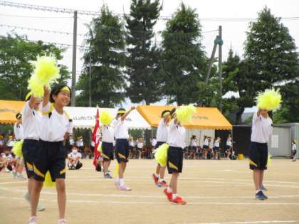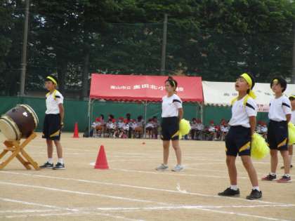 高学年の団体競技は「応援合戦」です。トップバッターは黄団です。