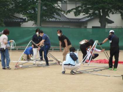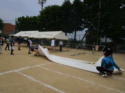 運動会後、大勢の保護者の皆様に片付けを手伝っていただきました。おかげさまで16張のテントも短時間でしまうことができました。