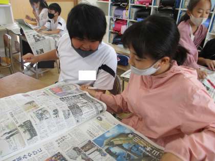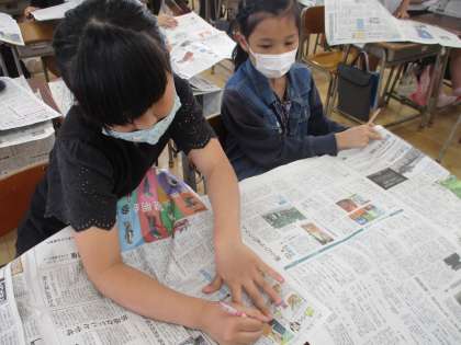 新聞に掲載された写真を見ながら、アップとルーズの写真の効果について考えを深め合いました。