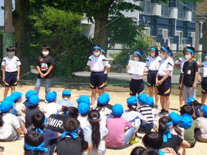 運動会の振り返り・解団式がありました。6年生から一言ずつ振り返りが述べられた後、最後のエールを行いました。