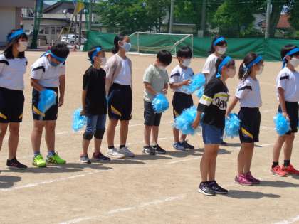 解団式の最後には、5年生から6年生に感謝の気持ちを込めてエールが送られました。1〜4年生も手拍子で気持ちを伝えました。