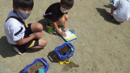 子葉がどのような色、形、大きさ(高さ)かを観察しました。じっくり観察して、植物のつくりを確かめ、理科の学習を楽しみました。