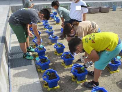 5月に植えたホウセンカの種が芽を出し、ぐんぐん育っています。子供たちは、水やりや雑草抜きに毎日励んでいます。