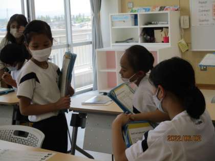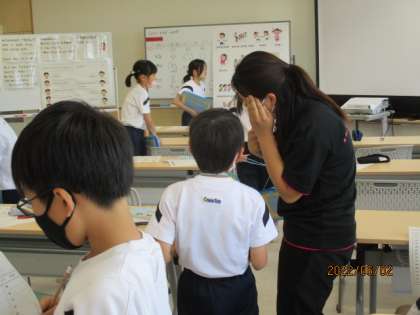 友達の好きな遊びを尋ね合いました。英語を意欲的に話そうとしています。たくさん尋ね合い、みんなの好きな遊びが分かったら、学級集会でその遊びを行う予定です。