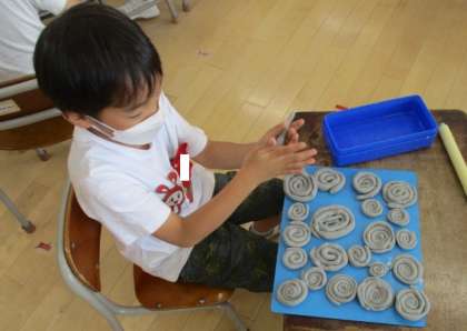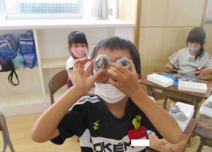 ひものつくり方を確認した後、グループで見合いながらを活動しました。