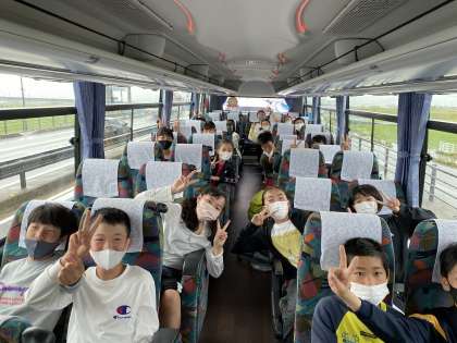 バス内では、今日の活動について確認し合う声が聞こえています。