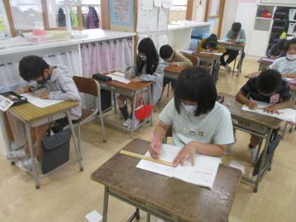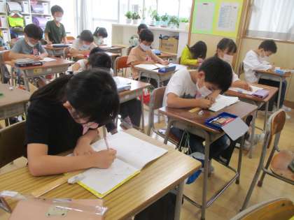 苦手と得意に分かれやすい学習ですが、一生懸命目盛りを読みながらがんばっています。