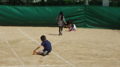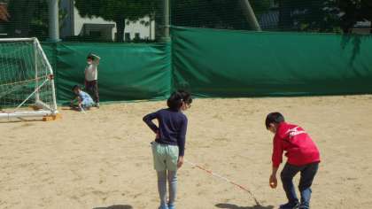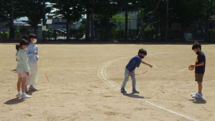 10mがどのくらいかを考えました。何回も行ううちに、10mに近づけられるようになってきました。