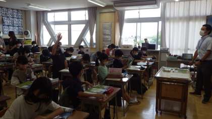 5年生は、山形県の庄内平野の写真を見ながら、庄内平野の特色について考えました。