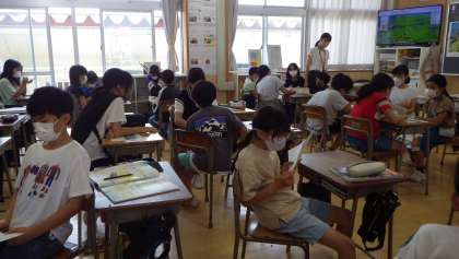 グループの友達と、庄内平野の写真を見て気付いたことを話し合いました。