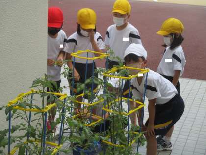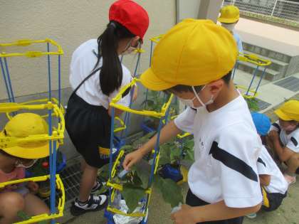 おいしい野菜のタイミングを考えて収穫したり、虫に食べられないようにアルミホイルやネットをかけたりして対策する姿が見られました。