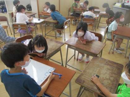 授業の最後に、みんなで協力して考えた「あいうえおのうた」を音読して、満足そうな子供たちでした。