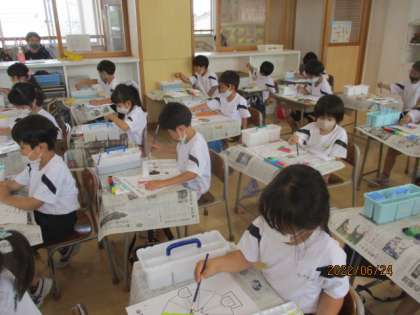 筆洗いやパレットの使い方、水彩の塗り方など、いろいろなことを学びました。