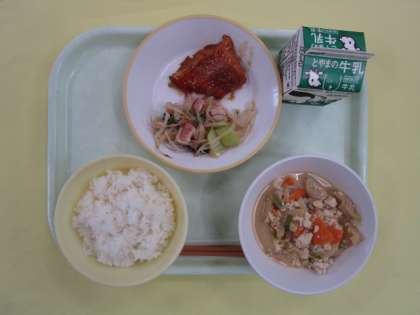 ごはん 牛乳 赤魚の照り焼き チンゲンサイソテー ごまけんちん