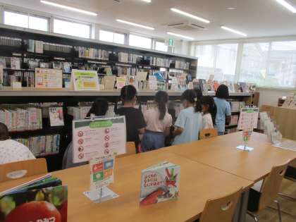 司書の先生の方の話を聞いた後、図書館で本を借りました。
