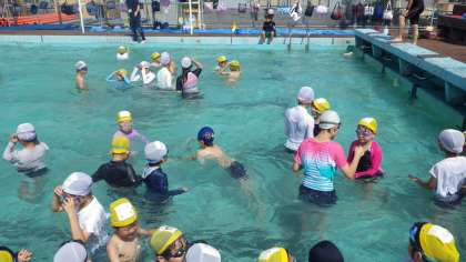 朝からとても気温が高く、水に入った子供たちは「気持ちいい〜」と喜んでいました。