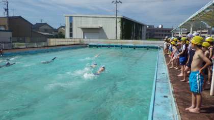 5年生さんの模範泳法を見て、「あんな風になりたいな」とこれからの水泳学習に意欲的に取り組もうとする姿が見られました。