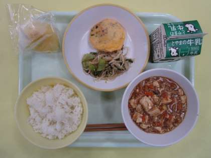 ごはん 牛乳 マーボー豆腐 かにたま ナムル 冷凍りんご
