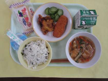わかめごはん 牛乳 きゅうりもみ 沢煮椀