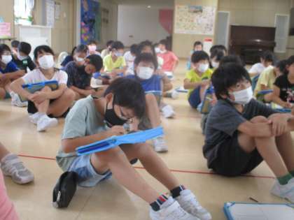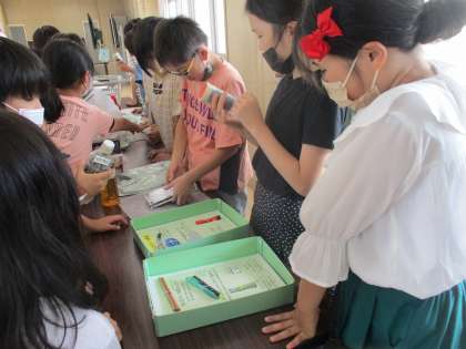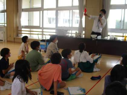 環境センターの方が学校に来てくださいました。ごみの学習の総集編。「3R」の説明を聞いたり、リサイクル製品を見たりしました。