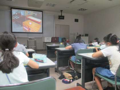 リサイクルセンターでは、施設内で行われる工程を動画で見ました。