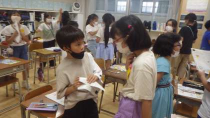 自分の好きな物、苦手な物についての自己紹介をしました。友達が言ったことに対して「Me too.」「Why?」とリアクションをしながら会話を楽しみました。