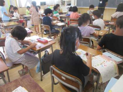 丁寧に文字を書いたり、夏らしい絵を描いたりして、もらう人がうれしくなるように取り組みました。