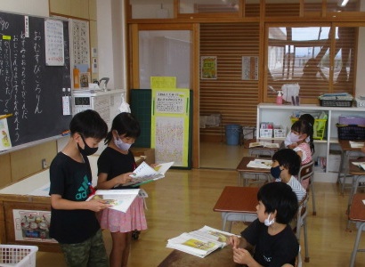 「ねずみのセリフの後に『チュウ』を入れるよ!」「ねずみのセリフをかわいく読むよ!」色々な工夫を考えて、楽しみながら音読する子供たちの姿が見られました。