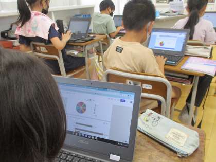 新聞をつくるための準備として、クロムブックを使って好きな○○(スポーツ、季節、フルーツ等)に関するアンケート調査をしました。