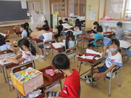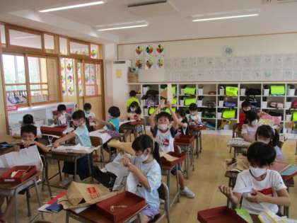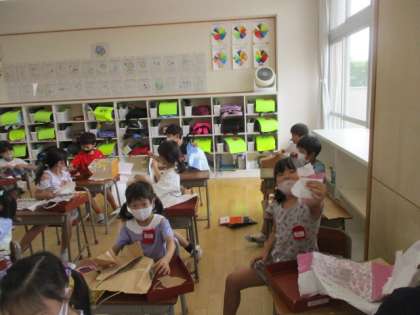 用意していただいた紙袋や包装紙を使って、学習しました。