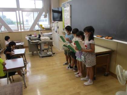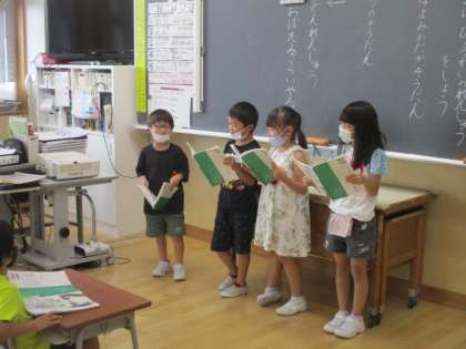国語科「おむすび ころりん」の音読練習と発表会をしました。