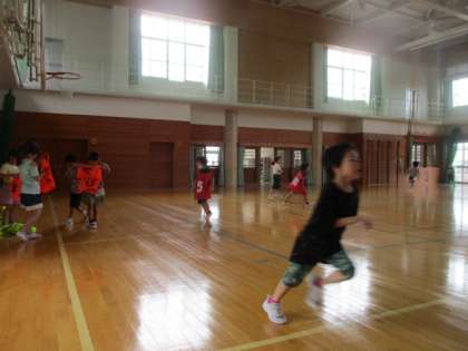 色帽子を昨日持ち帰っていたので、「タッチされた人は、どうやっておにって分かるの?」と聞くと、「折り返しリレーでアンカーが着ていた服を着れば分かる!」と答える子供たち。